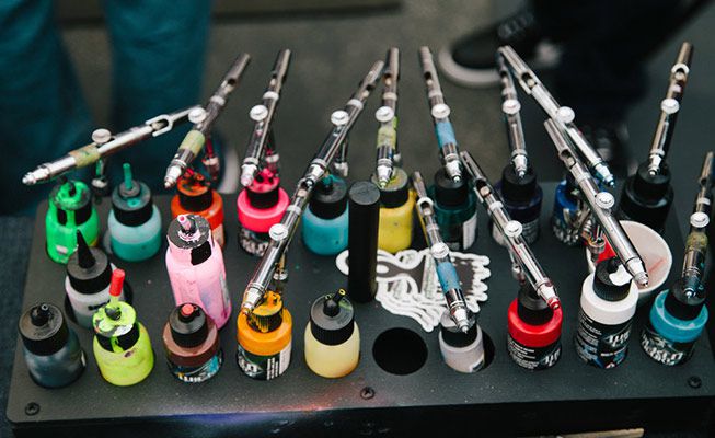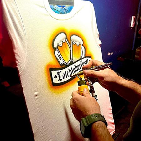 Our artists demo the versatility of airbrush art by showcasing its use to customise a wide range of merchandise, including clothes and accessories