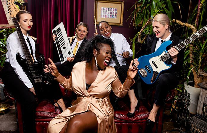 Starting as an incredible five piece, our all female party band can go down to a four piece and extending to an epic full ten piece including three vocalists and their in-house, party busting horn section! This all female party band offers a powerful, exciting and heady mix of classic power hits from all eras to guaranteed to fill any dancefloor
