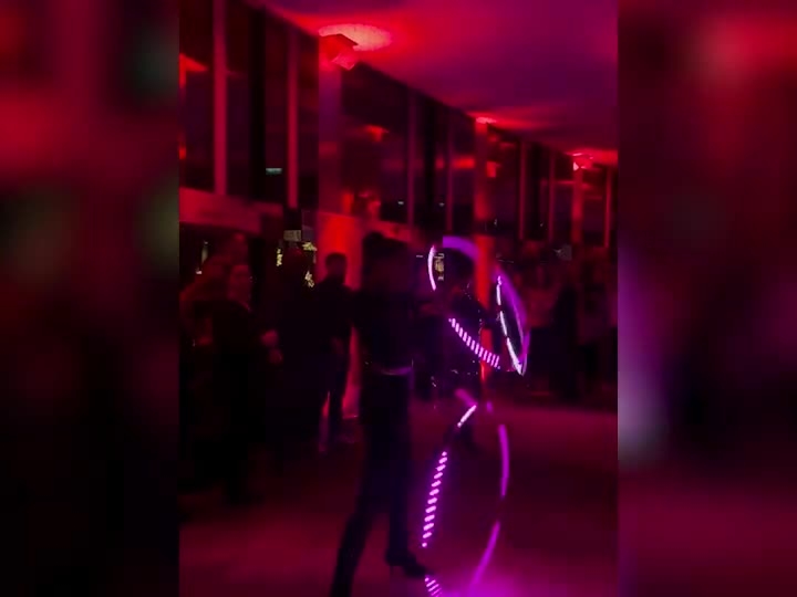 For those looking for circus entertainment that’s a little more quirky or perhaps retro, look no further than her hula hoop artistry. Lit up in fantastic LEDs, our talented hula hoop artist will dazzle you with her funky routines and spunky personality. The LED cabaret hula hoop routine is a particular favourite, combing all the cheekiness of cabaret with a beautiful hula hoop act for a wonderfully unique entertainment experience.