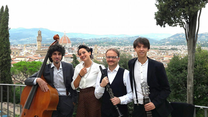 This Florence based American jazz band sound great and look fantastic on stage with their instruments. The quartet is made up of a vocalist, clarinet, double bass and classical guitar. A perfect choice for wedding receptions, gala dinners, concerts and drinks evenings.