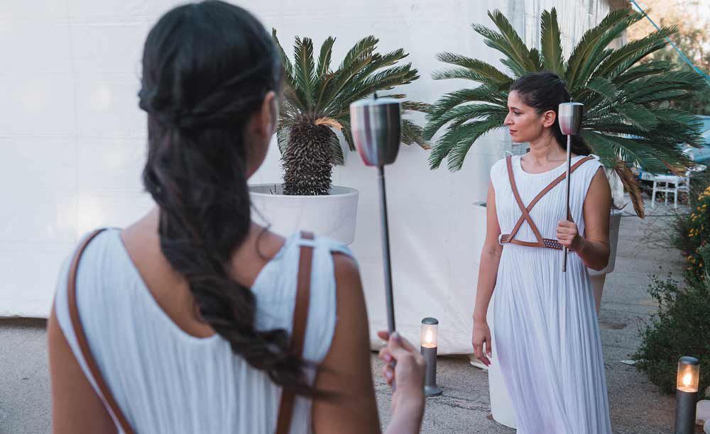Our elegant priestesses offer guests a warm and enchanting welcome to events, whilst wearing costumes rooted in ancient Greek history
