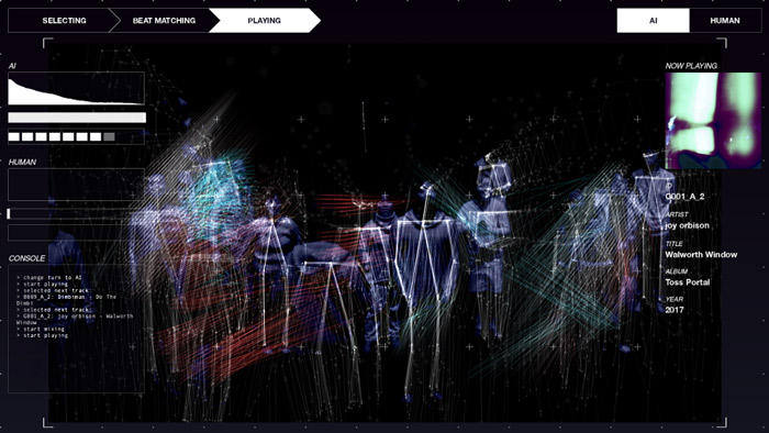 A pioneering and technologically advanced performance exploring an AI DJ's ability to acknowledge and accompany a real life DJ