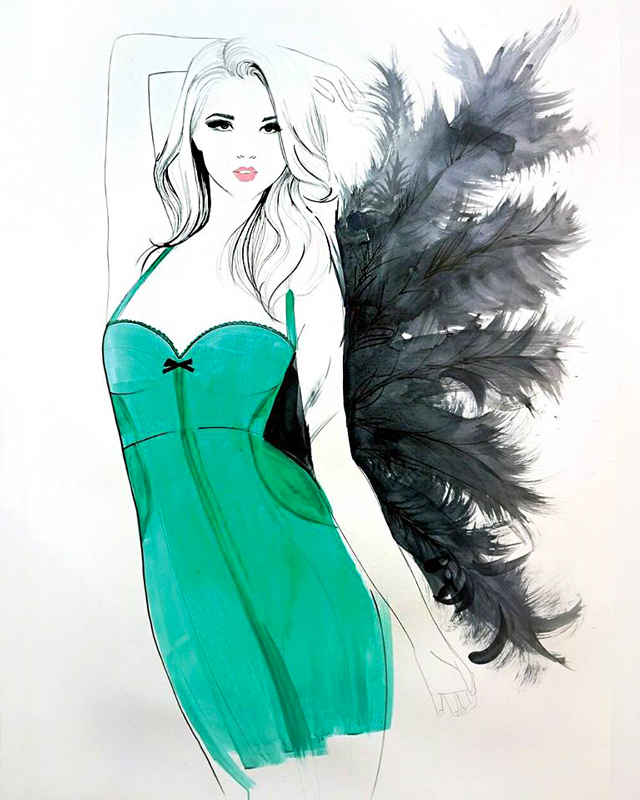 Previoulsy worked as a graphic designer for a decade and now works full-time as a fashion illustrator