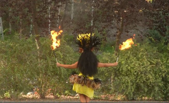 Optional fire elements, including fire poi, flaming torches and burning coconuts, add dramatic flair to select island performances when permitted