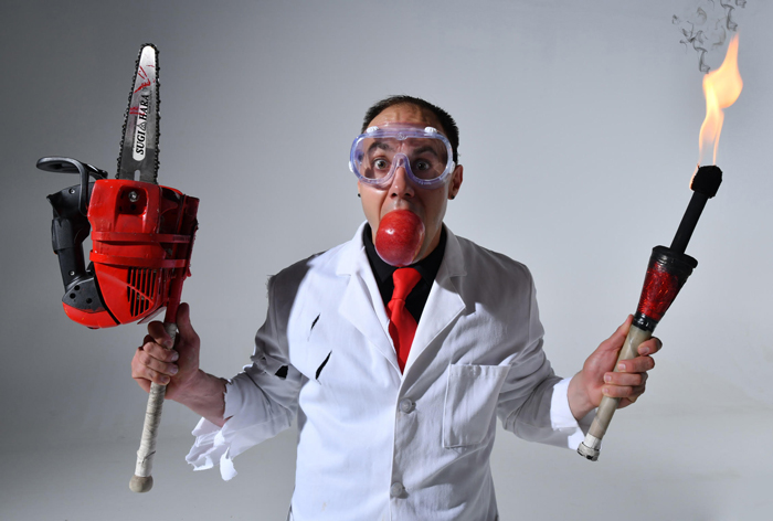 This award-winning juggler uses a range of props from tiny ping pong balls and clubs up to chainsaws and knives. His tailorable shows are captivating, funny and if you like, scary. He is quite the comedian and a bit of a daredevil. Our Award-winning Orlando Juggler likes to makes his audience laugh as much as he likes to make them feel fear as he juggles with razor-sharp knives and a chainsaw.