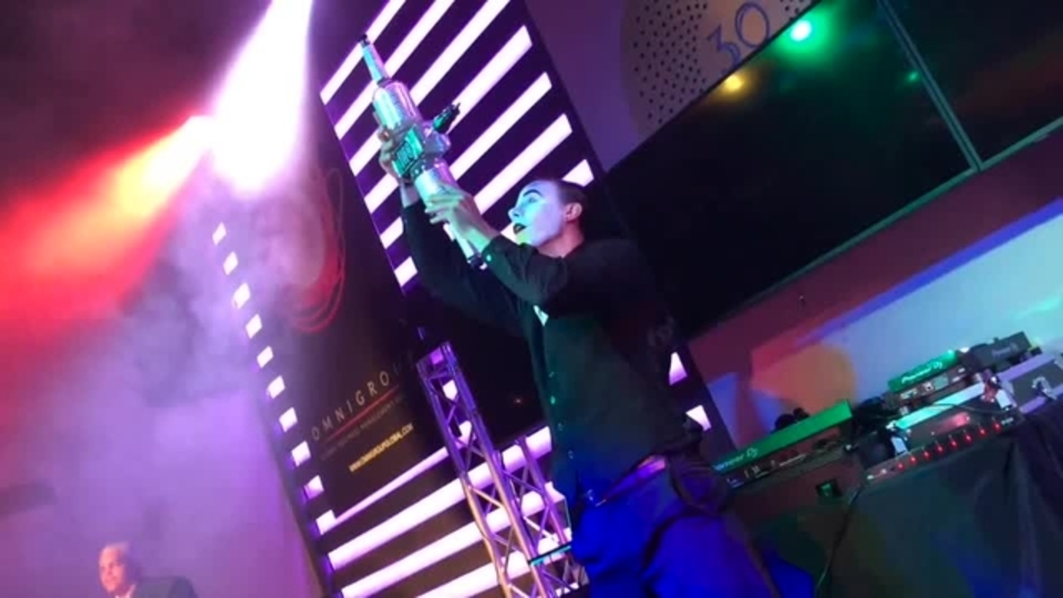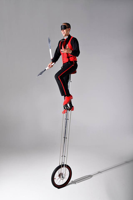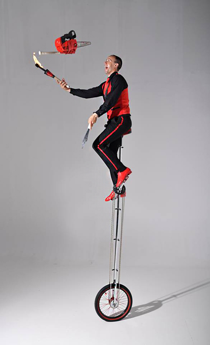 The entertainer can juggle with glass bottles and pour himself a drink, uses his mouth to juggle ping pong balls, ride a giant unicycle whilst juggling knives and much much more. His experience and expertise enable him to tailor a show to any type of event.