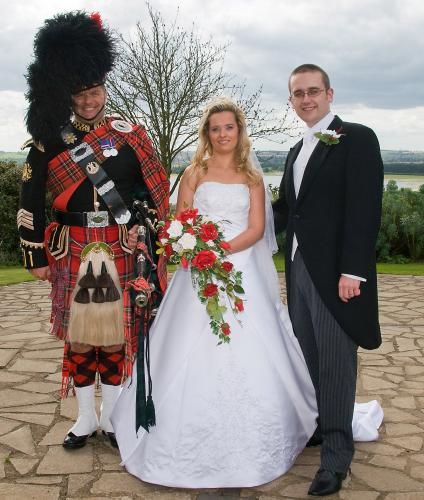 " We just wanted to thank you so much for playing at the church on our wedding day. You created a beautiful, Scottish atmosphere which the guests throughly enjoyed. My elderly grandfather who could only attend the church service said that the piper music was his favourite part of the service, so thank you very much. The rest if the day was fantastic, we couldn't believe how lucky we were with the weather! "