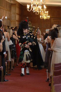 " We had a fantastic day, made all the more special by your presence. We had so many people come to us throughout the day saying how moving the ceremony was, especially the beautiful sounds of your bagpipes.I'd like to thank you for helping make our day so special. I will send you a picture when we get the disc from our photographers. "