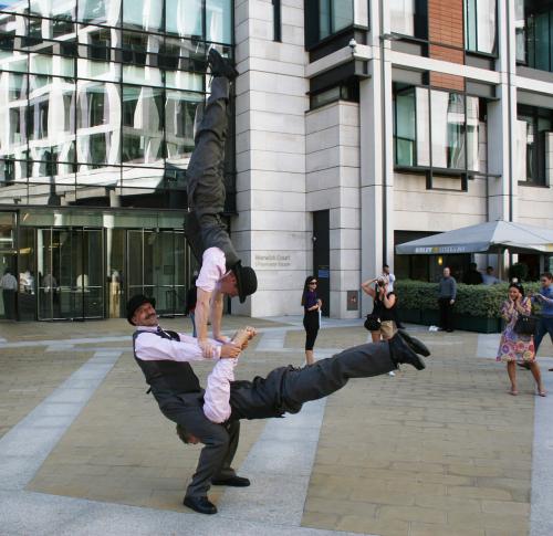 In business suits & bowler hats they’ll surprise with their acrobatics