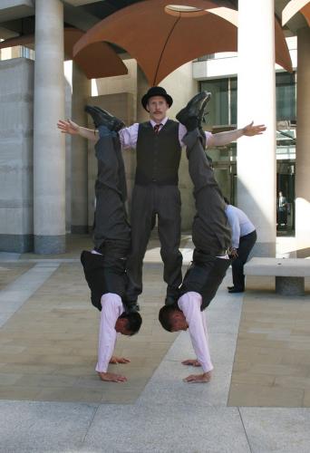 This acrobatic trio have created a unique ‘city slickers’ themed act showcasing their incredible acrobatic skills! Dressed in business suits and splendid bowler hats they will blend in with the crowd and surprise guests when they begin a daring acrobatic display. Their shows also have a fun interactive element and they are often seen persuading unsuspecting spectators to help them out with their acrobatic antics.