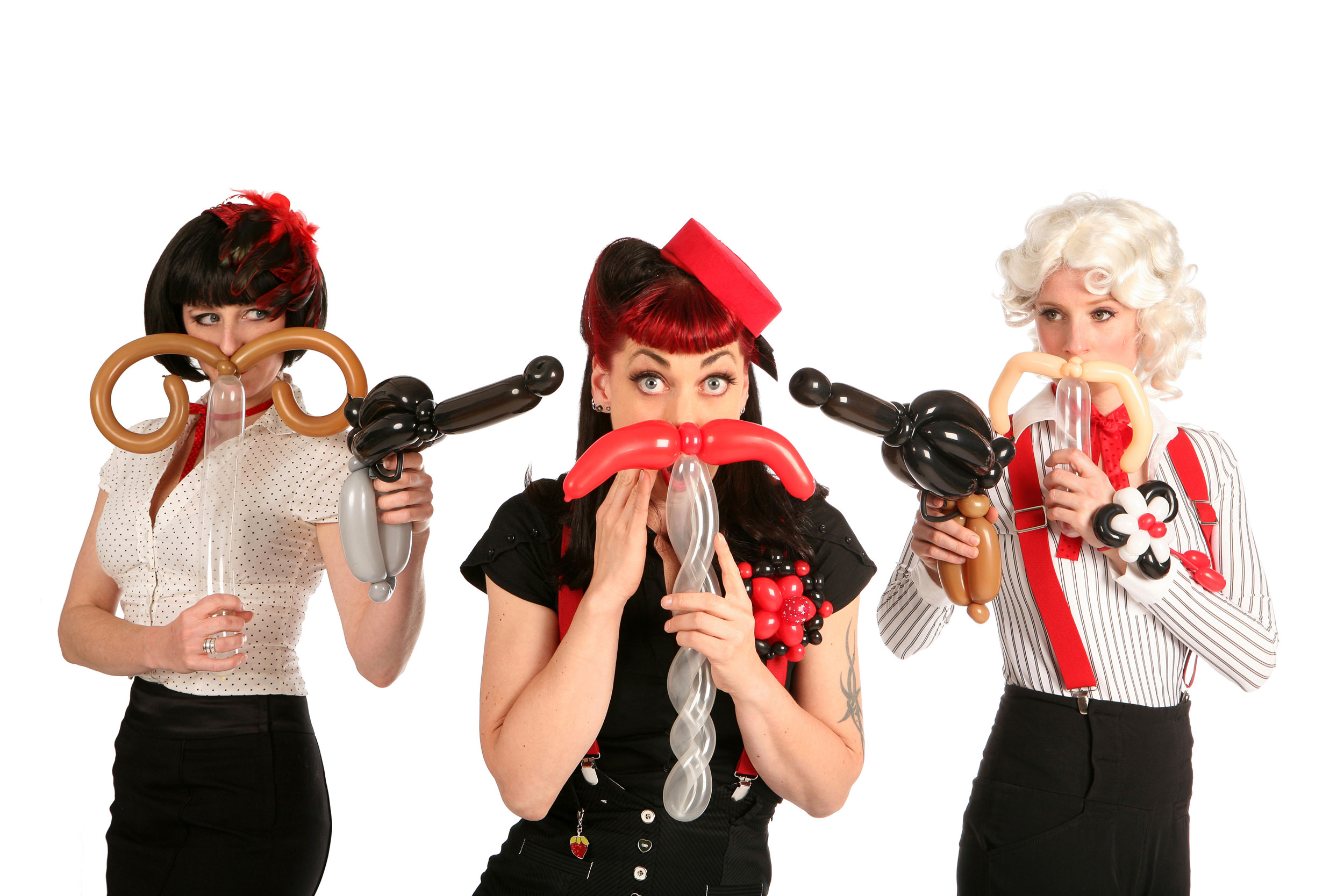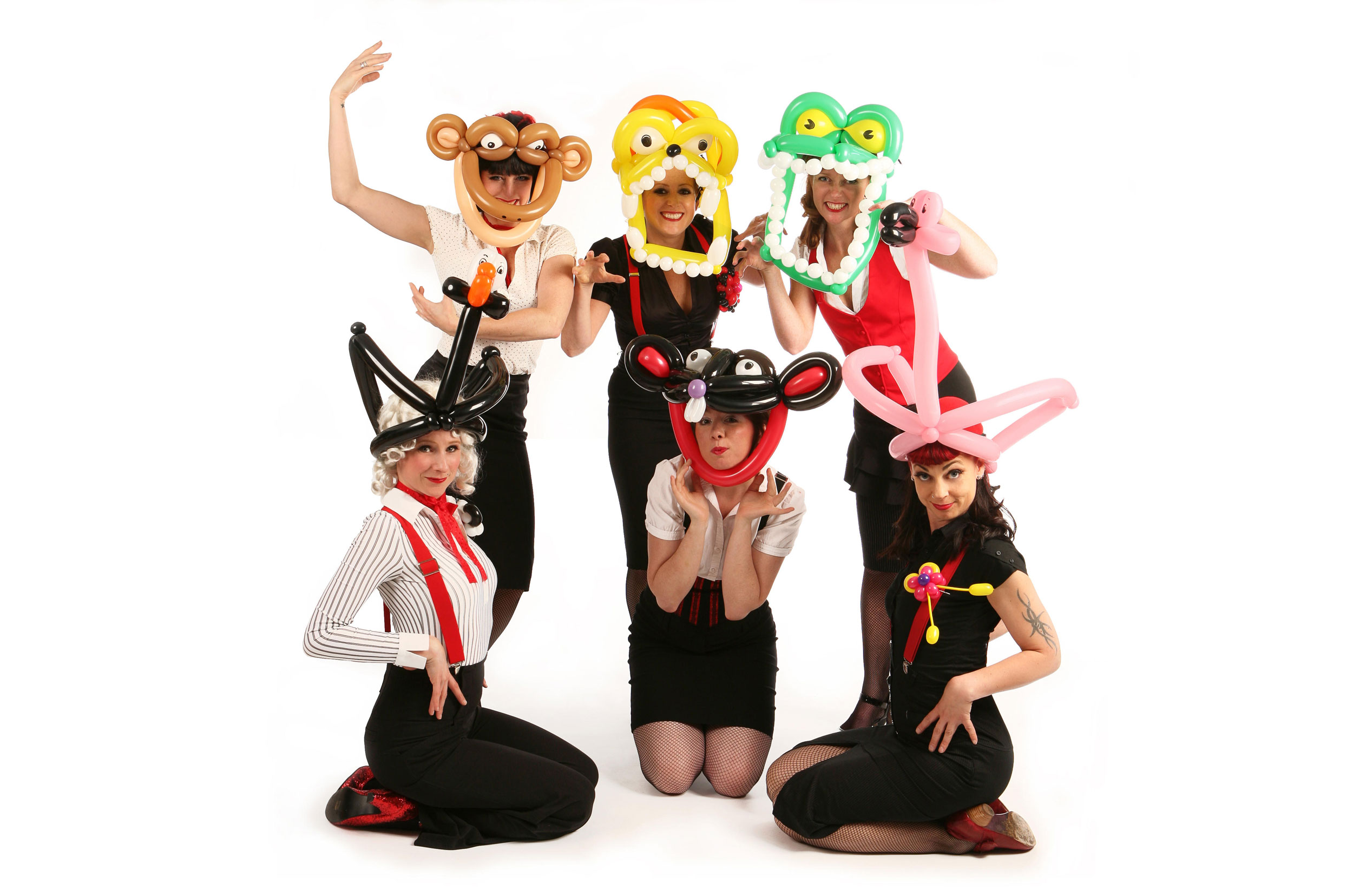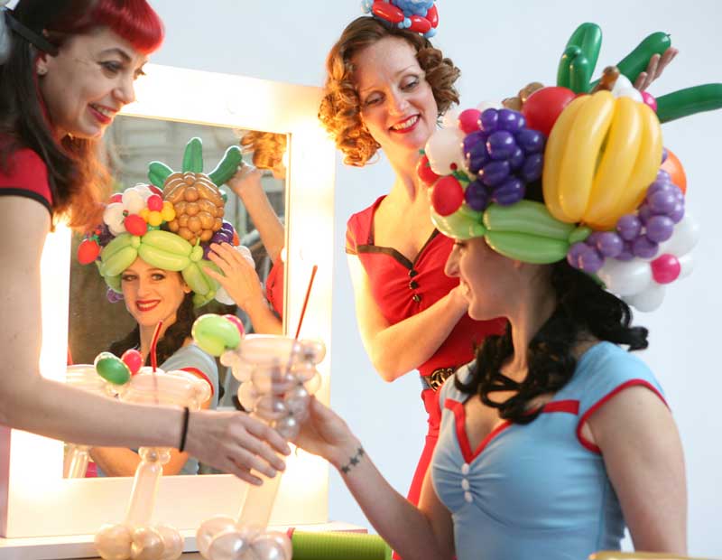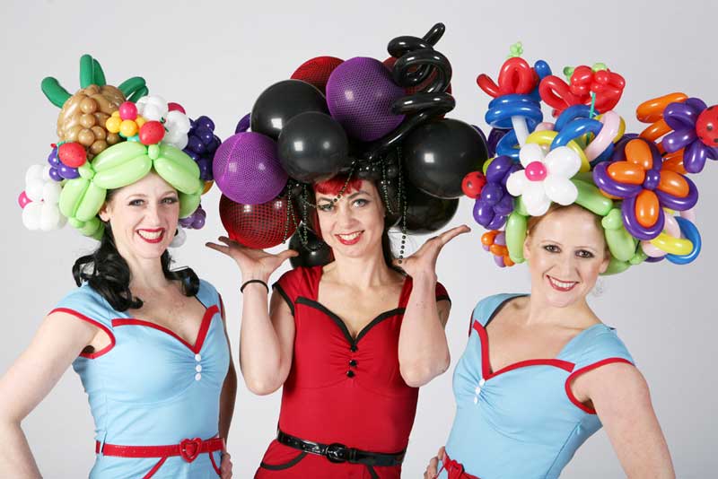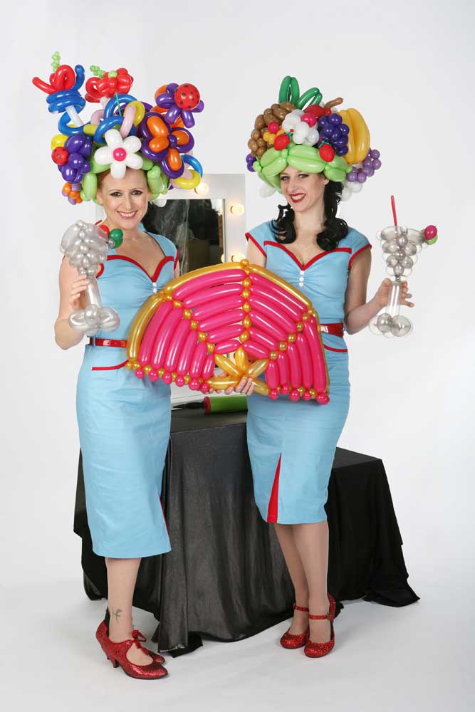 Bring something a little different to your event with our fabulous balloon boutique- a balloon act with a unique and glamorous twist. Our lovely balloon artists create fabulous wearable balloon costumes and accessories, from delicate jewellery to colourful costumes and headgear. This creative and clever balloon art act is a fun and fresh way to jazz up your event and guests will love their incredible balloon accessories and costumes. Our fantastic balloon modelling girls create an exciting atmosphere with their stylish balloon creations and their chic Hollywood style will add a touch of vintage glamour and fun to any event. Book our fantastic balloon boutique and amaze your guests with some delightful and original balloon art.