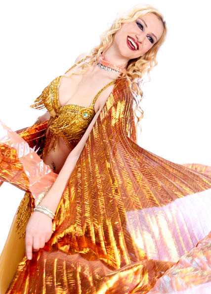 Our wonderful belly dancer can perform her oriental dance show with feather fans, Isis wings, sword and veil for an authentic feel. She also has an array of dazzling, elegant costumes in a range of vibrant colors to match any event theme. Usually performing dancing sets of 30+ minutes with a live band, she is able to tailor her performance in tempo and length, catering to short or long time frames, fast or slow-paced events, and performing with or without live musicians. The choice is yours.