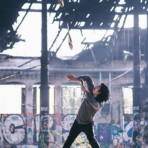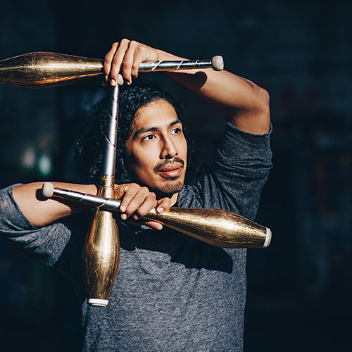 His impressive routines combine elements of classic cirque and acrobatics, adding a new dynamic to juggling