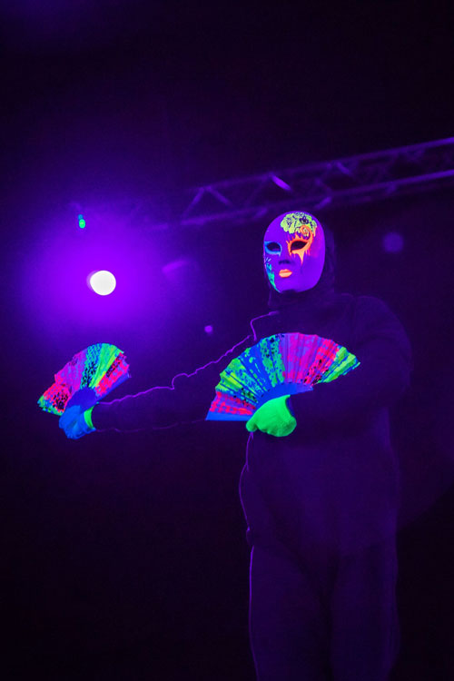 UV Venetian Mask and Fan show - dancers adorned in Glowing UV masks perform a dance full of illusion! The morph suited dancers have seemingly floating mask faces, glowing feet and hands that turn and spin with jaw dropping synchronicity. They also have glowing UV fans that increase in size throughout the performance, ending in hugely impressive works of art spinning and weaving in and around each other. A truly original performance tying in with the famous Masquerade elements of masks with a fresh modern twist!