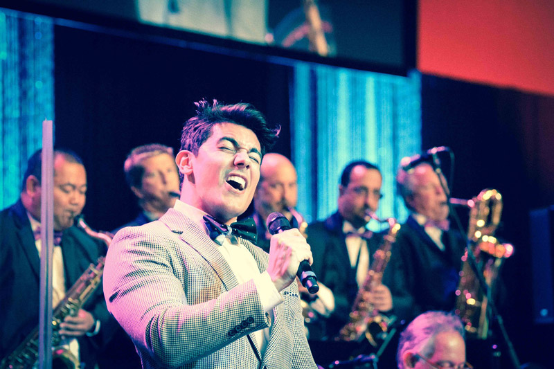 Our talented big band singer has a unique gift for singing, and will bring a great sounding soundtrack for your special occasion featuring his awe-inspiring vocals and complete passion for music. Our skilled swing singer will perform a diverse repertoire of jazz songs, pop tracks, and more and is available with a three piece or seventeen piece big band that's filled with skilful jazz musicians that help bring our swing vocalist's tone to life in a flurry of high energy and fiery passion. Providing your event with class and charm, our elegant and dashing big band singer will ensure guests are enjoying his musical styling.