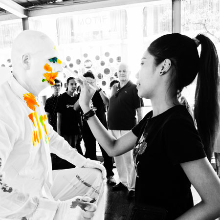 Premier entertainment agency Scarlett Entertainment supplies world class acts for events across the world. Bringing a personal touch to event coordinating, our expert sales team work on a one-to-one basis with clients to source the best entertainment for their special occasion. Maintaining a strong working relationship with all of our acts, we will ensure that every element of your event runs smoothly. Blank Canvas Living Doll is an innovative art themed walkaround entertainment option, certain to unlock guests’ inner Jackson Pollocks. An immersive art project, our walkabout character is painted by your audience throughout the event. An experienced street performer, our roaming character mixes and mingles with guests, creating a positive environment and lasting memories of the occasion.