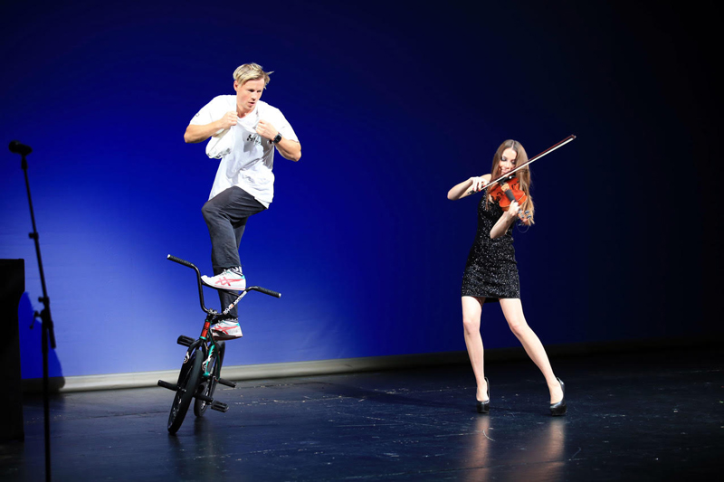 Fascinating violin and BMX act performed by talented crossover violinist and world BMX champion