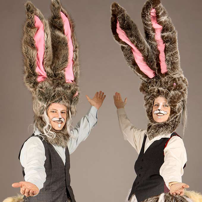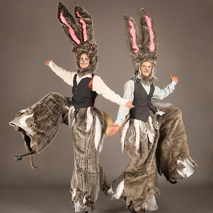 Our walkabout bunny characters perform on special bouncing stilts giving them a fun and realistic rabbit-like movement to amuse guests of all ages