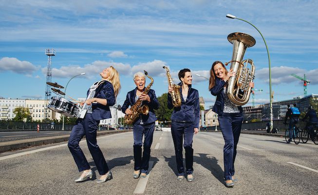 This all-female Brass Quartet comprises of drums, tuba and two saxophones. The four professional-musicians play well-known melodies in ingenious, witty and slick arrangements. Whether unplugged and cosily tucked-in amongst the audience, or amplified on stage, the audience will be astonished and amazed by their original programme and its theatrical and choreographed elements.