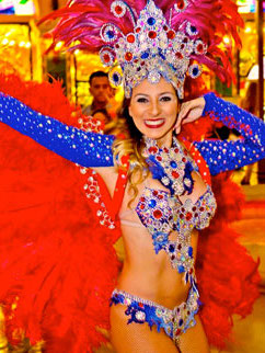 The show combines everything from beautiful dancers, giant stilt walkers, fire dancers, limbo dancers and so much more! The ensemble can also provide a wide variety of authentic Brazilian music, including Bossa Nova, and of course, Samba.
