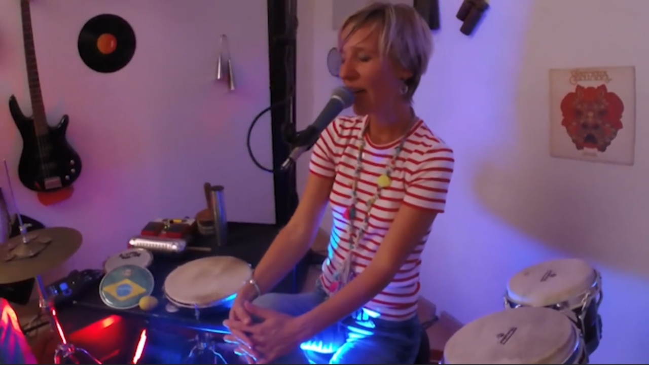 Instruments include guitar, drums, bongos, shakers and more