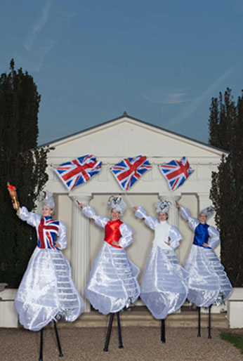 Elegant and beautiful, our costumed performers will provide your upcoming special occasion with an interactive entertainment experience that is bound to bring the wow factor to your event. Mix and mingling with your guests throughout your venue, our wonderful stilt walkers create a flurry of different meet and greet opportunities that helps your guests get even closer to our exceptional stilt act. Draped with fabulous Union Jack inspired costumes, our roaming act can feature more than 4 performers for a magical atmosphere building experience that is filled with smiles and laughter.
