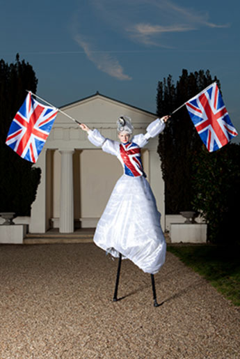 Our fantastic roaming costumed performers showcase amazingly crafted costumes that can light up in red, white, and blue fashion, giving your engagement a simple light show. Also available, our wonderful stilt walkers can use light poi's that have been programmed to feature a virtual Union Jack or a customizable colour choice. Catapulting your event to new heights and levels of awesome, our Britannia stilt walkers are the ideal British themed entertainment option for sporting events, community functions, parades, Olympic celebrations, street parties, corporate events, and much more.