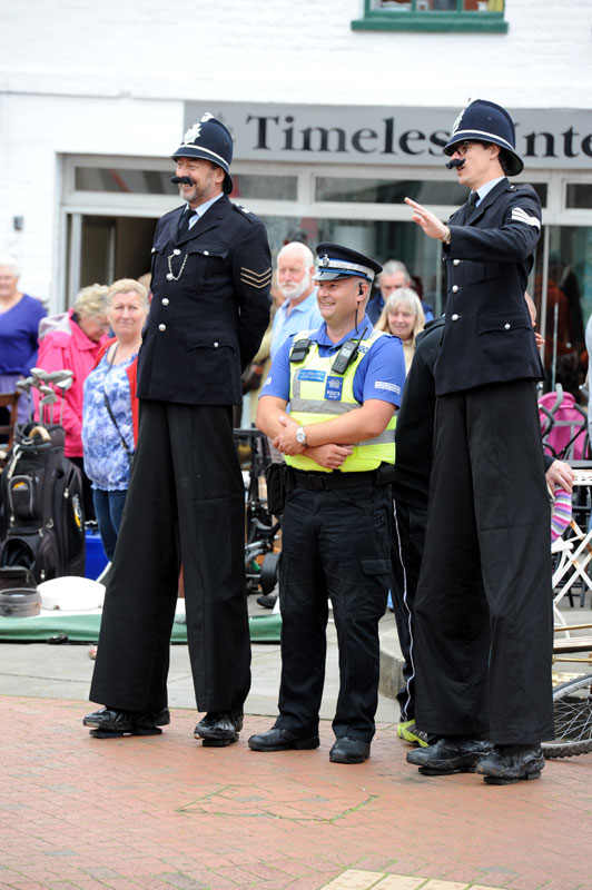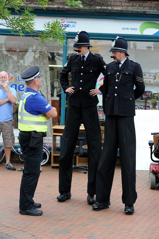With both male and female stilt artists, our British Coppers Walkabout Act is constantly evolving and growing with its prepared humour observing British policing culture.