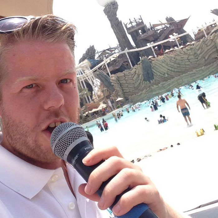 This British MC relocated to the Middle East and gained a reputation as being one of the top emcee’s in the area. As a talented a versatile event host and presenter his work ranges from shopping malls, theme parks, hotels, sports stadiums, corporate events and a lot of family-friendly public entertainment. He has also been involved with product launches, weddings and meet and greets.
