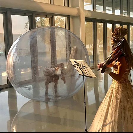 Combining graceful contortion with immersive presentation, this performer transforms the bubble into a living, moving work of art