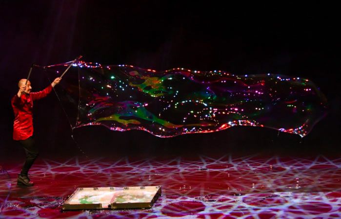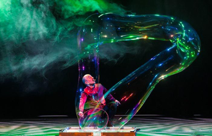 An outstanding show that transports audiences to a dreamlike, surreal world, our brilliant performer David truly is a master in the art of bubbles! Suitable for audiences of all ages, the show presents scientific ideas, poetic moments, and a good deal of hilarity all through the medium of bubbles.