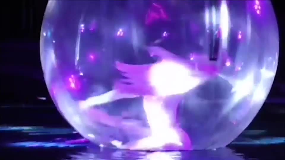 Bubble sphere act can be performed on water or on land as a solo performance, as a pair, or as part of a larger production
