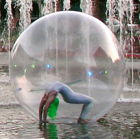 Each giant bubble contains a mesmerising acrobat or contortionist