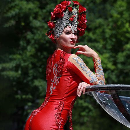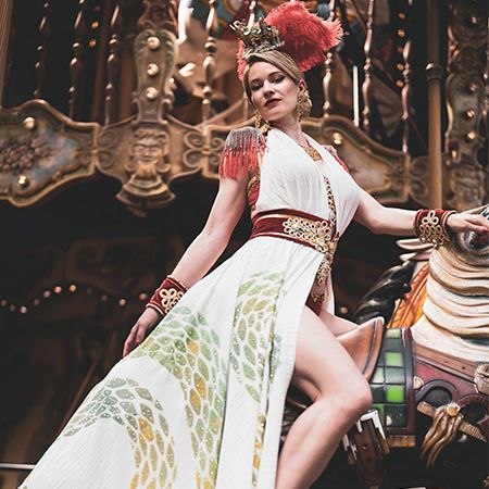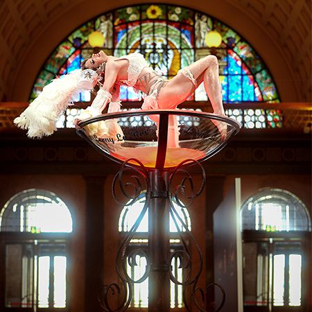 Taking inspiration from bygone eras such as the 1920s and 1950s, this glamorous performer will mesmerise audiences as she performs in beautiful bespoke costumes, enchanting viewers with a mischievous striptease or an elegant martini glass routine.