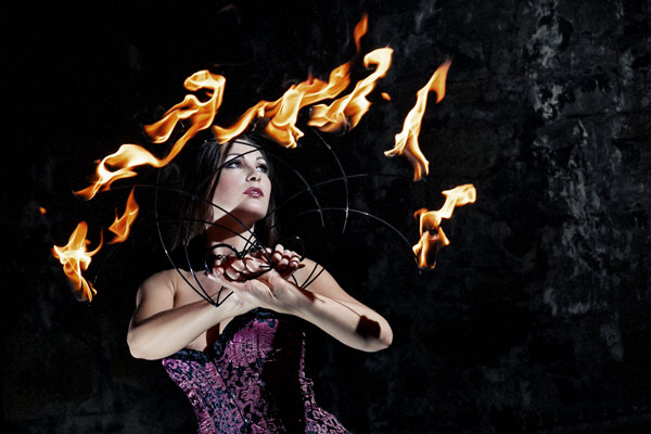 A blend of unique creativity, style, glamour and beauty, our New York burlesque artists offers a fire show unlike any that you will have ever seen before. She can perform: fire sword dance, fire fans dance, fire fingers dance, fire palm torches dance, fire tray dance, fire goddess headers dance incorporated with the art of burlesque.