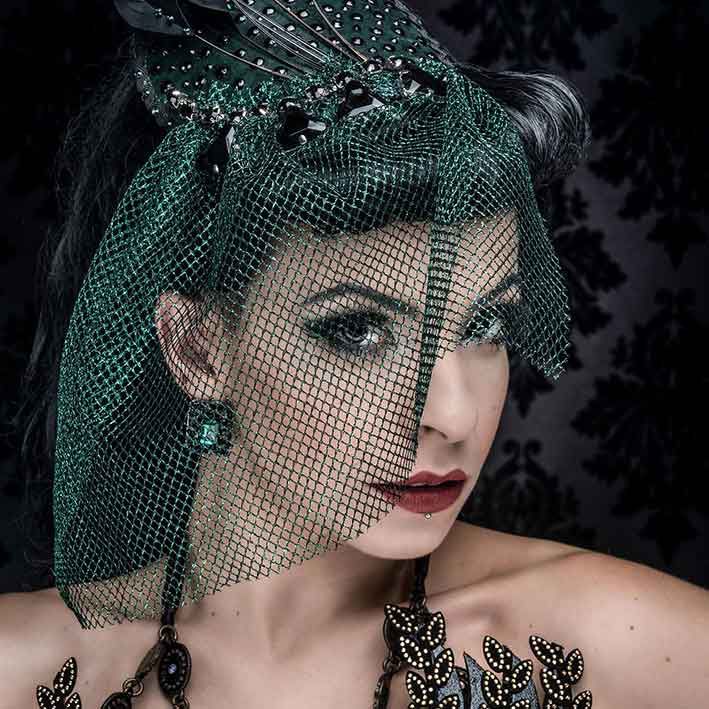 She designs and creates all of her own characters bringing a hit of noir and glamour to any event
