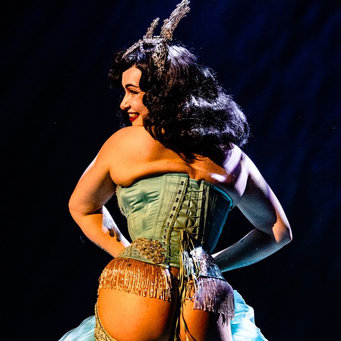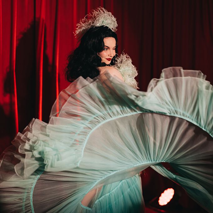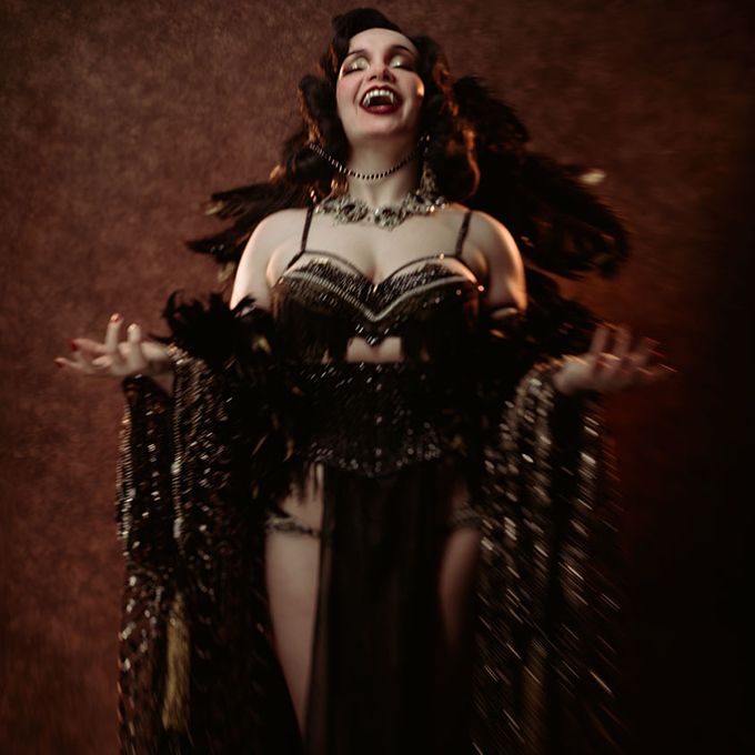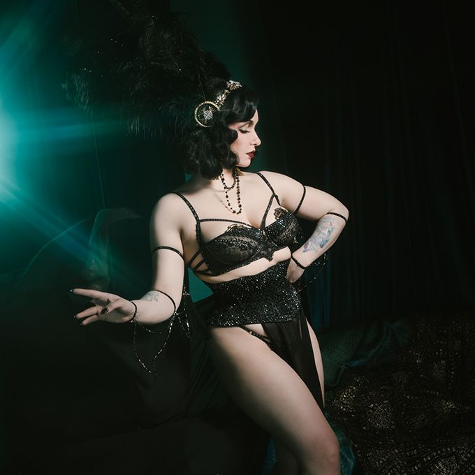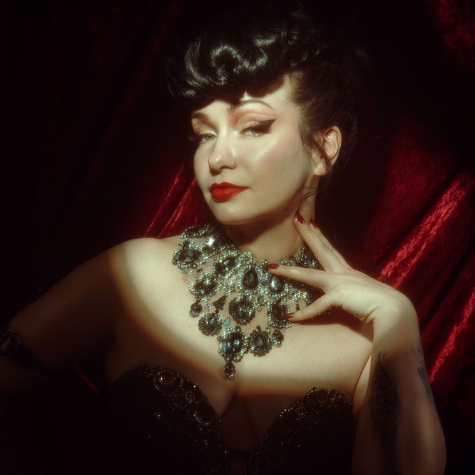 Known for her captivating stage presence, dazzling costumes and elegant yet playful burlesque acts that celebrate confidence and theatrical glamour