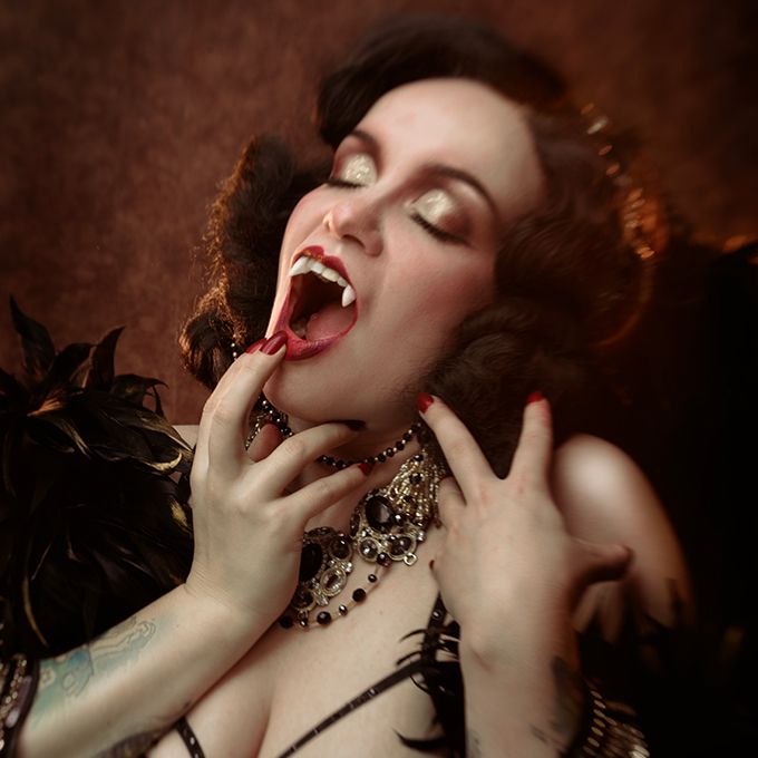 She performs a variety of burlesque acts, from classic glamour and vintage showgirl to dramatic, artistic pieces