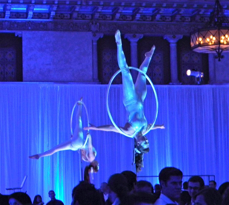 In addition to performing outstanding aerial routines our event aerialists can be booked as champagne serves, waiting on your guests and pouring their drinks from their pole hoop making for interactive event entertainment that goes above and beyond for exquisite service.
