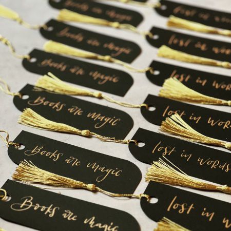 Her product customisation services span calligraphy, engraving, hot foiling, bottle painting and embroidery, tailored to fit any event