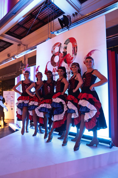 The dance show is fully costumed with iconic red, white and blue can can skirts complete with elaborate feathered headdress and sensational corsets. Fun and flirty, our French themed dancers will mesmerise guests at your event with a high-energy dance routine full of impressive high kicks and even some acrobatics!