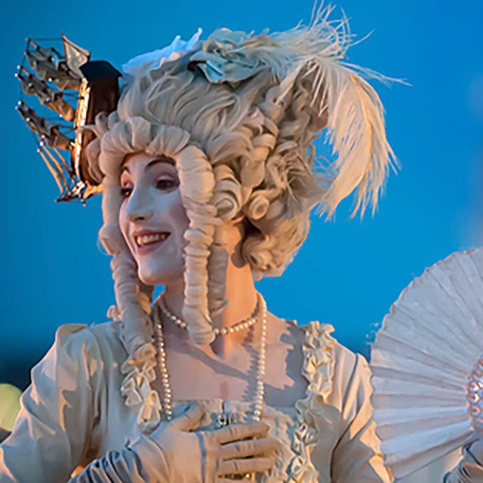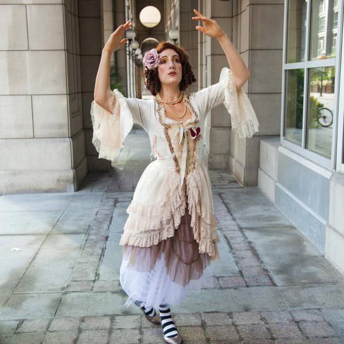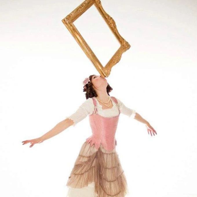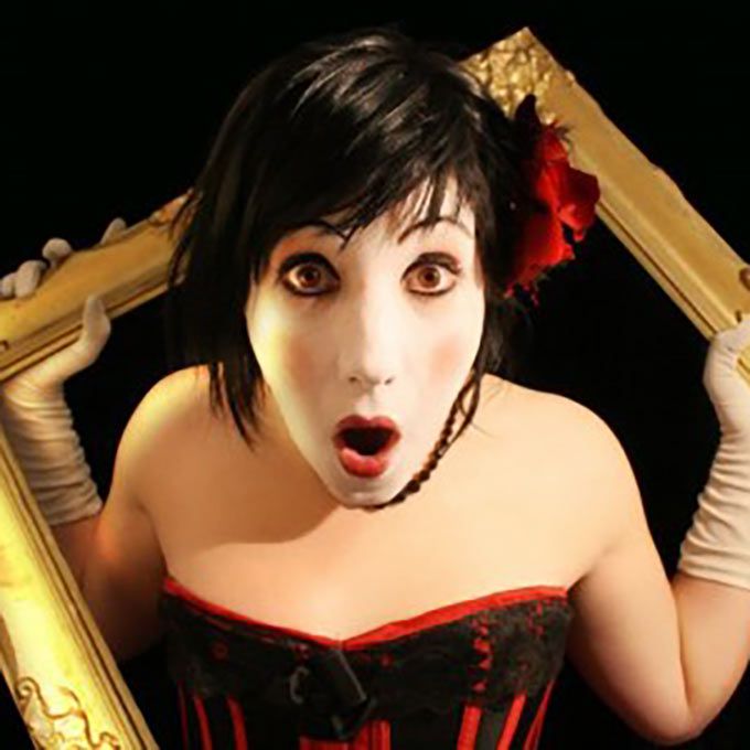 Combining engaging performances with elaborate costumes, she produces visually stunning creative-movement-based living art and mime shows