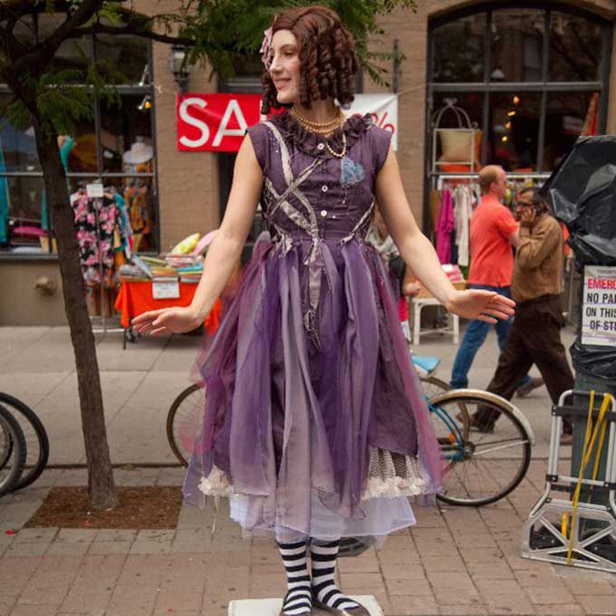 From informal street corners to world-class festivals, she performs her amazing mime acts across Canada the US, Europe and Asia,
