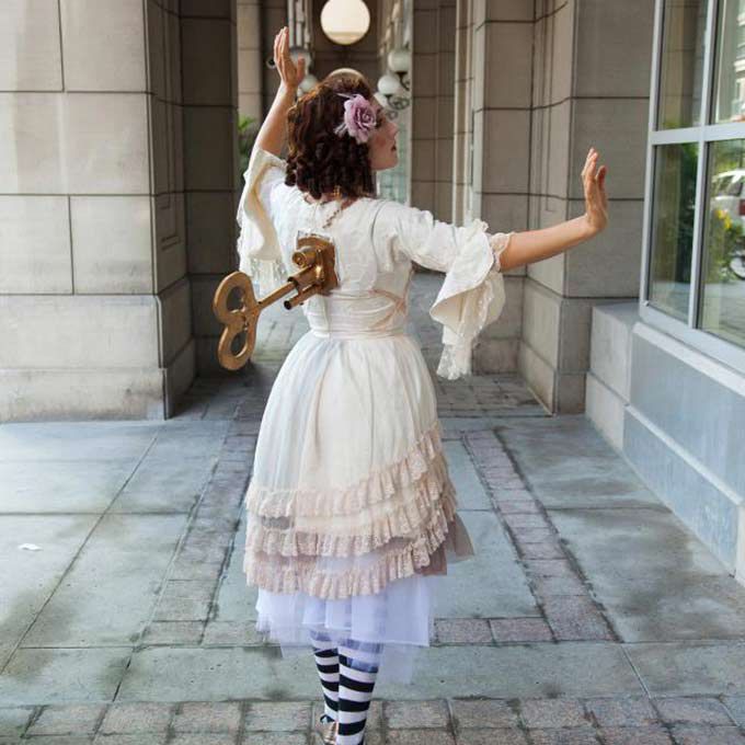 International mime artist performs her interactive wind-up doll "Coppelia" from street theatre installations to art-house theatre shows