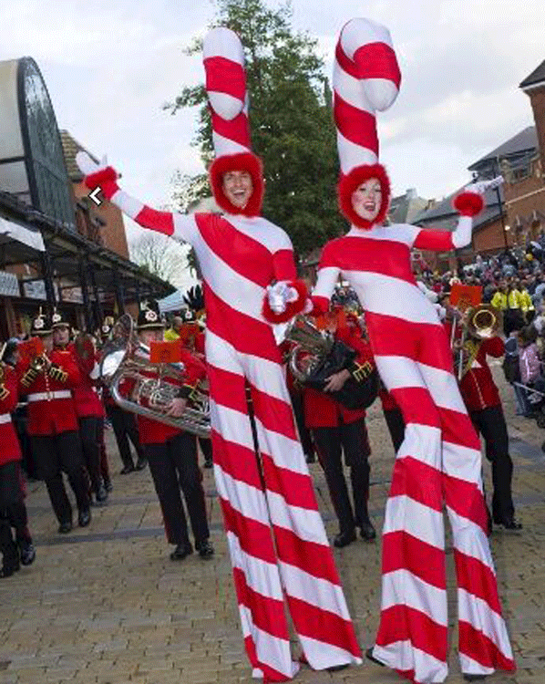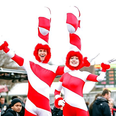 With captivating personalities these Candy Cane Stilt Walkers bring a warmth to every event and will turn heads wherever they go as they majestically roam about your event, interacting with all whom they encounter on their way.