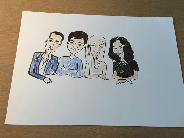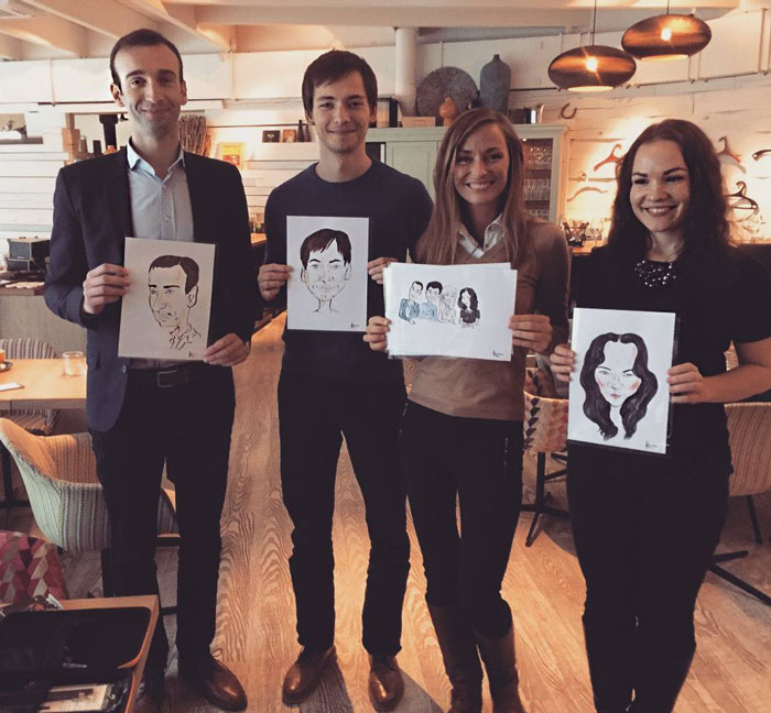 Our artists will draw funny but realistic caricatures of your guests in under seven minutes