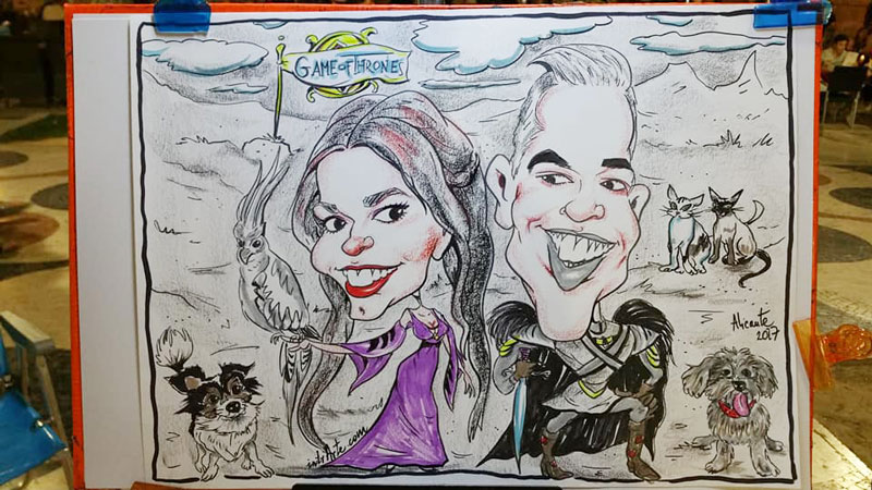 Live event caricatures are a popular entertainment option for a variety of occasions including weddings, corporate events, birthdays, promotional events, trade fairs and exhibitions, to name but a few. Happy to work both indoors and outdoors, our versatile live event artist is flexible adapting to different spaces. Based in Alicante, out live event caricaturist is available for bookings across Spain.
