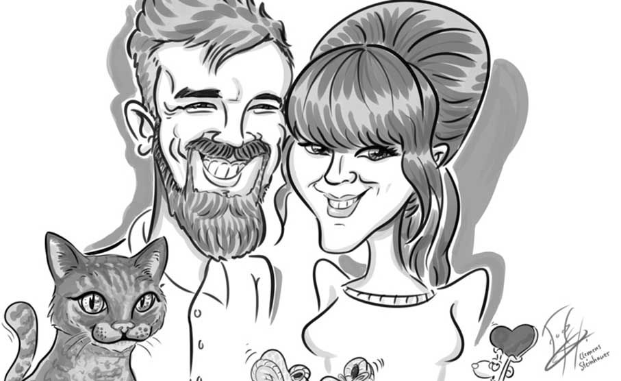 Expertly capturing the defining characteristics of each subject, Clemens’s caricatures are both humorous and impressively accurate, blending exaggeration with precision to offer guests a great memento of the occasion.