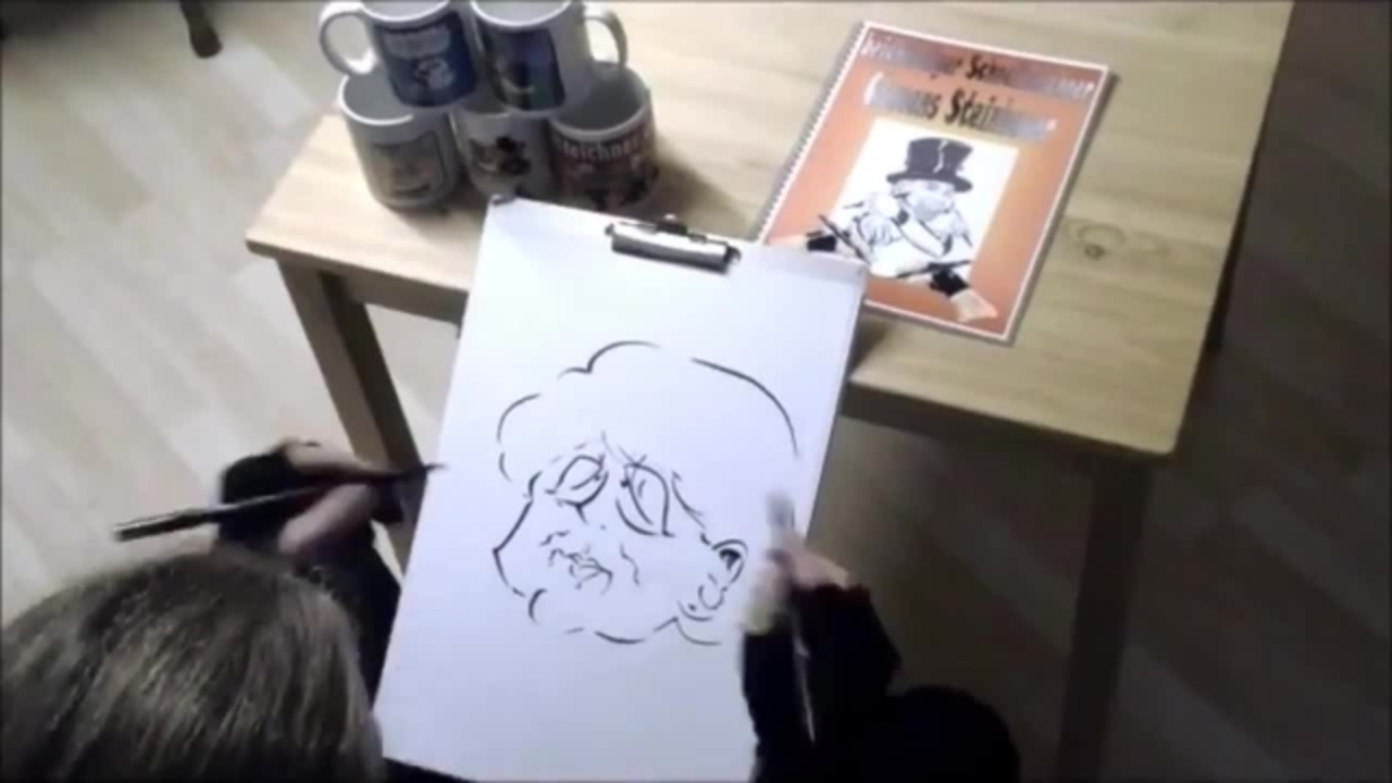 Brilliant caricaturist draws with both hands!