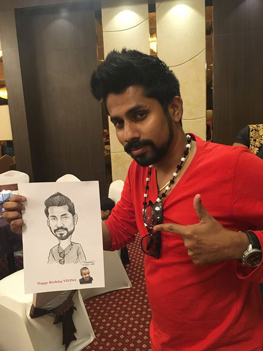 Originally from India, this event caricaturist and illustrator studied at the RLV College of Music and Institute of Fine Arts, India. He has been a full time event and digital caricaturist in Dubai for over 10 years working for a very wide spectrum of event types and brands as well as being booked for events in Oman, Qatar and Tanzania.